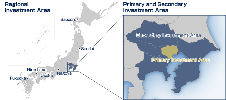 Our Primary Investment Area (Tokyo 23 Wards) is our main focus of investment. However, we also pursue investment in our Secondary Investment Area and Regional Investment Area* based on existing market conditions (stock, pricing, lease market conditions, etc.).
